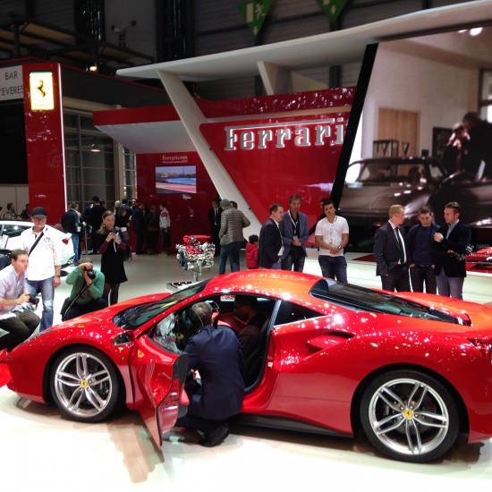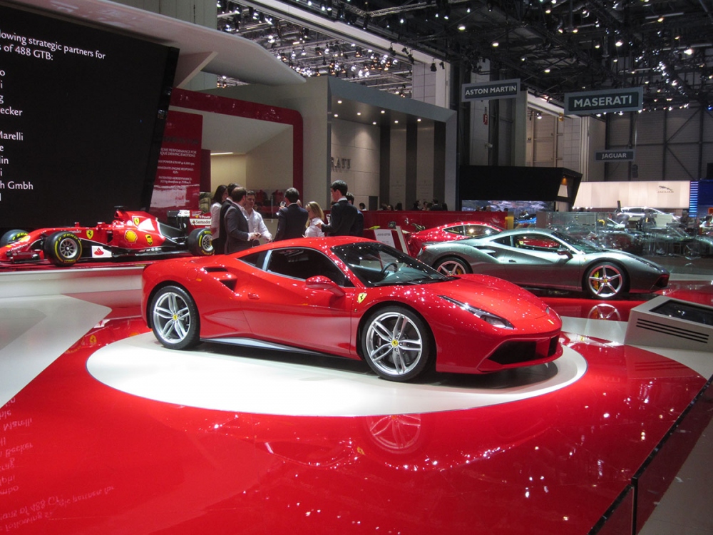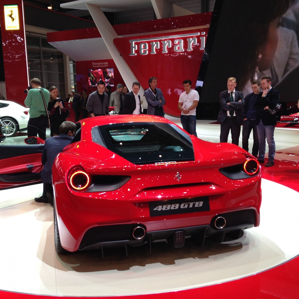Среди спортивных автомобилей состоялась мировая премьера Ferrari 488 GTB. Суперкар является заменой предыдущей модели 458 Italia. Впервые за несколько десятилетий Ferrari опять использовала технологию двойного турбонаддува — автомобиль имеет сверхмощный 3.9-литровый двигатель V8. Такая конфигурация позволяет набирает скорость в 100 км/ч всего за 3 секунды и 200 км/ч за 8, 3 секунды. Стоит отметить при этом существенно возросший крутящий момент. Теперь он составляет 760 Н⋅м (3000 оборотов/мин) в минуту по сравнению с 220 Н⋅м (6000 оборотов/мин) у 458 Italia. Ferrari 488 GTB выполнена в абсолютно новом стиле и с абсолютно новым двигателем. Спорткар использует двойную автоматическую 7-ми ступенчатую трансмиссию аналогичную той, что используется в болидах Формулы 1. Максимальная скорость 488 GTB составляет 335 км/ч.