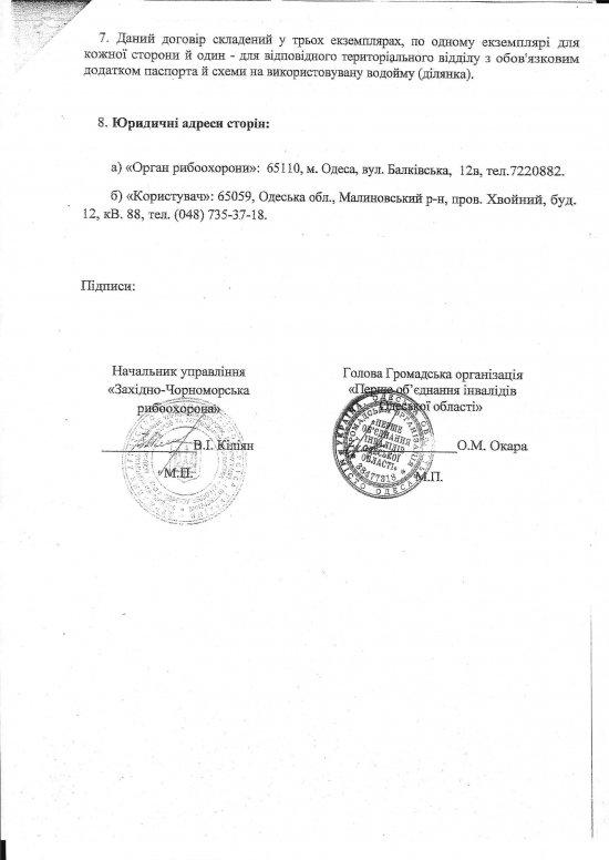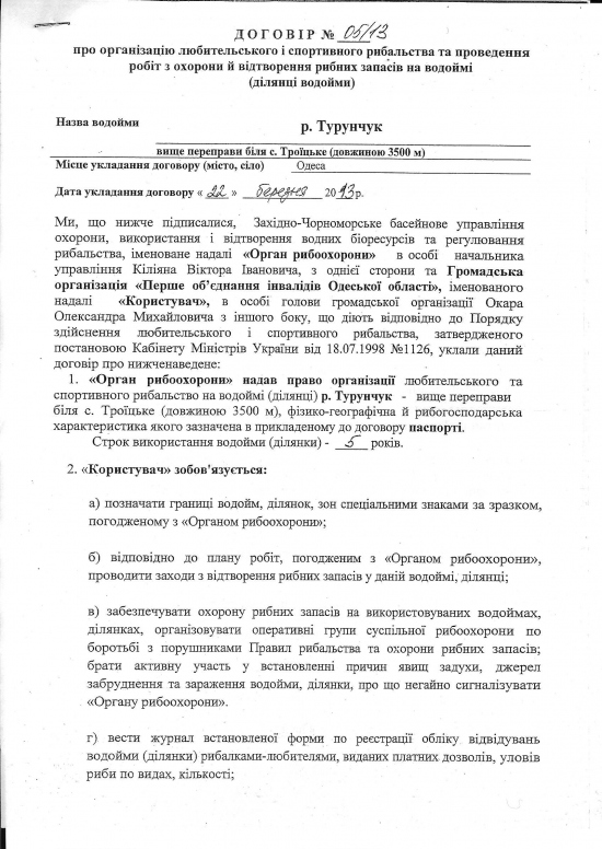 Теперь немного о тех самых «инвалидах». Согласно договора (см. ниже) пользователем участка на р. Турунчук стала Общественная организация «Первое объединение инвалидов Одесской области» под председательством Окара Александра Михайловича. Наверное мало кто слышал о этом объединении и их добрых делах на благо инвалидов. Даже гугл не в курсе. Расположена общественная организация по адресу: г. Одесса, пер. Хвойный 12 кв. 88. А теперь самое интересное — телефон организации 048-735-37-18. Странным образом, этот номер телефона принадлежит компании «Строительная стратегия» г.Одесса, ул.М.Говорова 10б. строительная-лицензия.od.ua, занимающейся помощью в оформлении лицензий и разрешений на строительство. Еще один сайт «инвалидов» http://www.prava.od.ua/services.html. Телефон тот же (048)735-37-18.