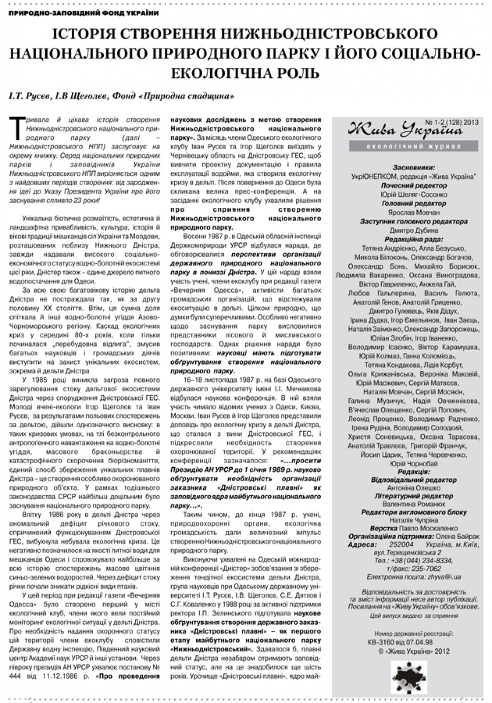 В день создания национального парка мне предложили выступить на Одесском государственном телевидении с наиболее резонансными проблемами в границах этого объекта. Но сегодня уже пошел 7-й год национальному природному парку на Днестре. Во вчерашней статье не хотелось писать об истории его создания. Мы с Игорем Щеголевым все надеялись, что администрация самого парка, на своем сайте (http://dnestrpark.com/), напишет хоть какую-то сжатую его историю невероятно тяжелого и долгого рождения парка. Это, при том, что в прошлом году, при содействии профессора и большого друга Днестра Елены Байрак, был издан прекрасный сборник. И там есть передовая статья о краткой истории создания Нижнеднестровского НПП. Издатель подарил администрации национального парка немало экземпляров. Но, увы, у администрации парка, видать, есть «свои» дела и «свои» истории, далекие от самой идеи создания таких объектов природно-заповедного фонда. Об этом я как то напишу в других статьях. Сейчас я выставляю статью Ивана Русева и Игоря Щеголева из указанного сборника для тех, кто интересуется Днестром, историей создания национальных парков в нашей стране, и особенно, для молодых, которые возможно вдохновятся и найдут свой путь созидания на нашей прекрасной украинской земле.