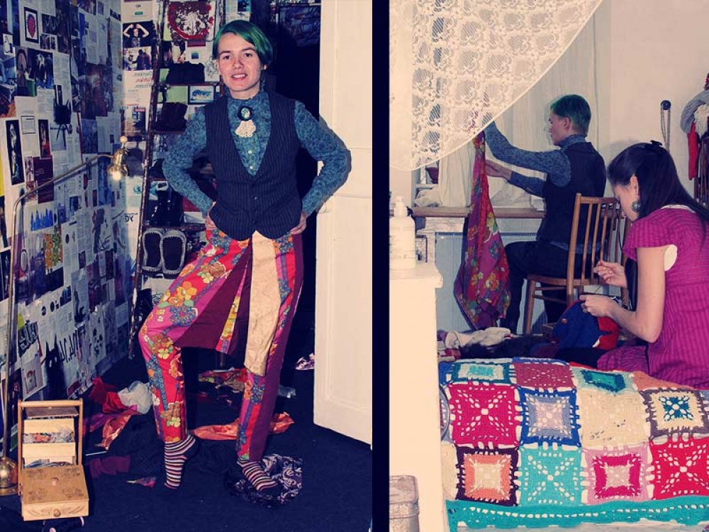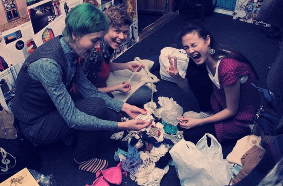 Вот вам идея, как бесплатно и с пользой провести время: устройте вечеринку! Не банальную вечеринку, а DIY-dresscrossing-party. Такая вечеринка решает сразу две проблемы. Хотя, вот оказывается, что даже три! Первое, конечно, это — решение проблемы бардака в шкафу, приобретение новых вещей, а в-третьих — любой вечеринкой можно неплохо развлечь себя и своих друзей. В основном, понятное дело, подруг) Парня в этот момент можно посадить в соседнюю комнату с ноутбуком и пивом, а можно заставить фотографировать вас и подносить всяческие напитки. Теперь подробнее о приобретении новых вещей. Такая вечеринка — хороший повод отдать кому-то какое-то свое барахло, чтоб освободить место новому, весеннему, чтоб весна наконец-то пришла. Можно, к примеру, переосмыслить назначение лифчика и сделать из него шляпку-наушники [фото справа]. А можно поступить более радикально и переделать леггинсы в болеро (при помощи одних только ножниц) [фото слева]. Можно пригубить стаканчик-другой вина и всерьез начать кастомизировать свои старые вещи. Вполне реально сделать брошь из вязаных кусочков и застежки от старых жемчужных бус. Можно сшить такие брюки из всяких обрезков ткани. Даже, если получится кака-то хрень, это все равно не так уж и важно, главное, что имеет значение — это процесс. Серьезно, это весело! А еще можно дать вторую жизнь теплой шерстяной кофте, которую погрызла моль, сука такая. Просто сменив на ней пуговицы и пришив несколько вязаных «латок» на те места, где пиршество моли не может быть незаметным. Всегда полезно принести на такую вечеринку свои вещи, которые ты по каким-то причинам не носишь. Коллективный разум обязательно даст тебе совет на счет их переделывания! К тому же по этому поводу можно устроить небольшой dress crossing, что тоже не может не радовать. Правила |