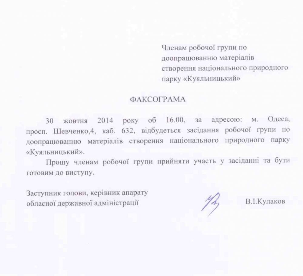 На четверг назначена новая встреча членов рабочей группы по созданию Куяльницкого НПП. Заметьте, раньше когда нас приглашали — это была Чегодарь Н. Теперь — это зам губернатора В.Кулаков. Но проводить совещание все равно будет… Чегодарь Н. Но, кто бы ни проводил совещания — национальному природному парку на Куяльнике быть! Ведь это важно не только и не столько для тех кто создает парк и проводит совещания, а для самой природы и для будущих поколений. О результатах обязательно расскажу.