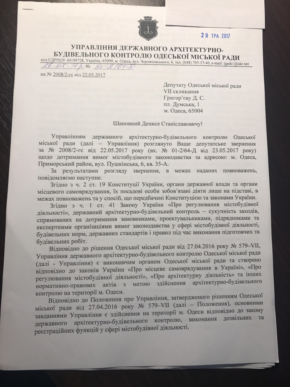 Также интересует кто разрешил в доме №10 на Дерибасовской достроить на крыше себе этаж. Это же ппц