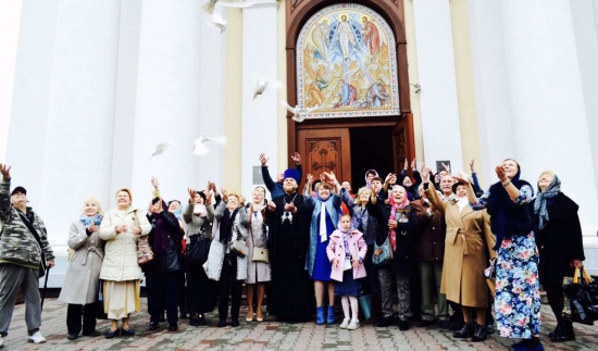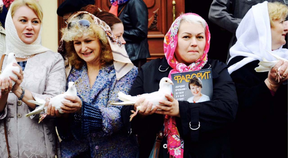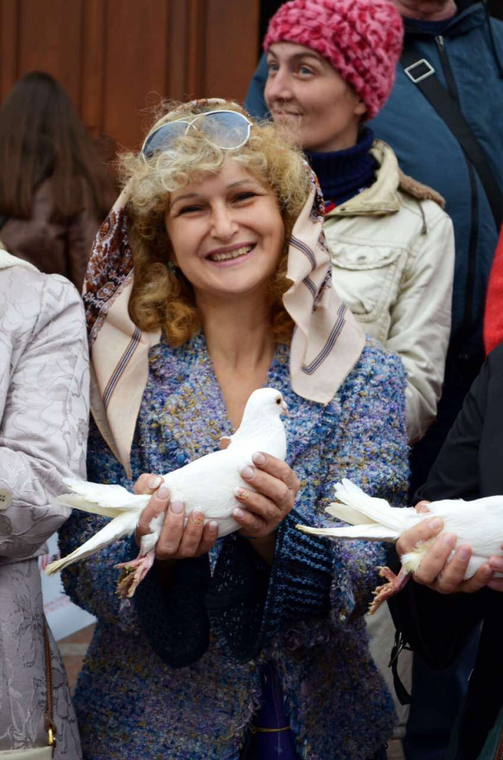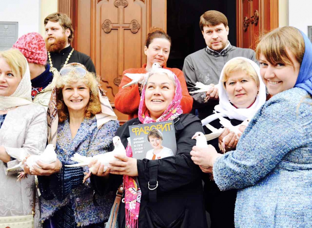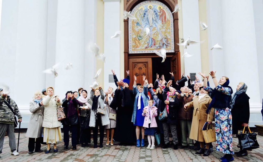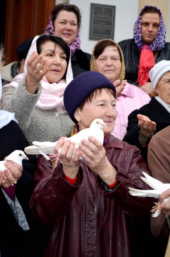 По завершению молебна в небо были выпущены десятки белых голубей, которые являются символом мира.