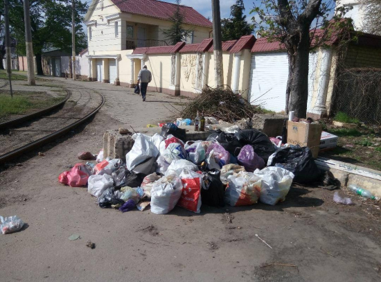 В туристическом районе нашего города растёт произвольная свалка. В районе 12 ст. Фонтана (на углу улиц Гаршина и Дачной) раньше стояли мусорные баки. По какой-то причине их убрали, и в итоге на улице Гаршина не осталось ни одного мусорного бака. Но люди, тем не менее, продолжают складывать свой мусор на прежнее место (видно срабатывает мышечная память). Раз в 2-3 недели, когда гора мусора грозит упасть на трамвайные пути, мусор убирают. Но гора быстро растет, и отходы разносят по улице бездомные собаки и ветер. Запахи там стоят неописуемые. Не говоря уже о том, что это против всех санитарных норм.