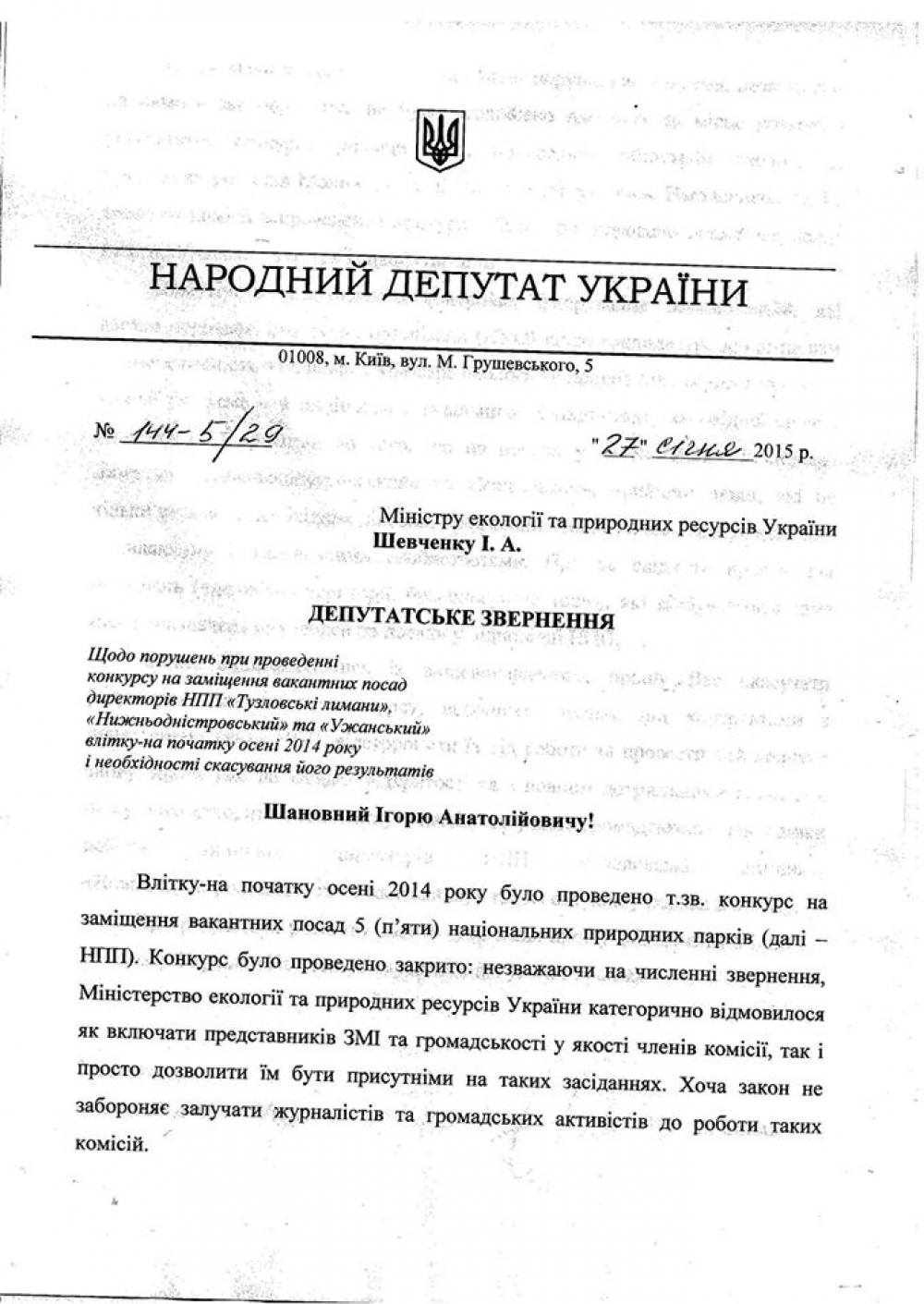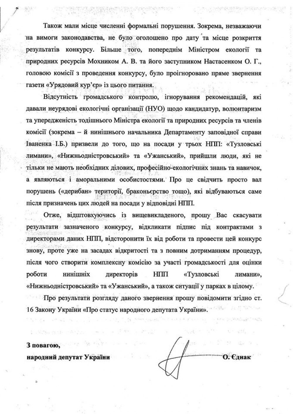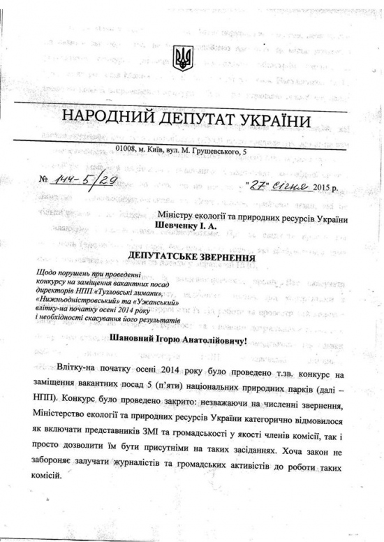 Народный депутат из Самопомощи за прозрачный конкурс директоров национальных природных парков