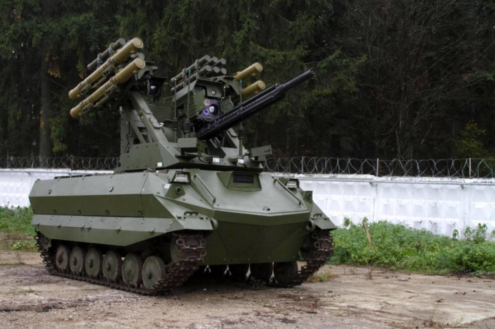 Довідково:«Уран-9» — бойовий багатофункціональний робототехнічний комплекс на гусеничному ходу, що розробляється ВАТ «766 Управління виробничо-технологічної комплектації» (ВАТ «766 УПТК»). Згідно з даними «Рособоронекспорту2, система призначена для виконання комбінованих бойових, розвідувальних та контртерористичних завдань. Озброєння включає в себе 30-мм гармату 2А72 та чотири ПТУР «Атака». Комплекс «Уран-9» був прийнятий на озброєння ЗС РФ в 2016 році.