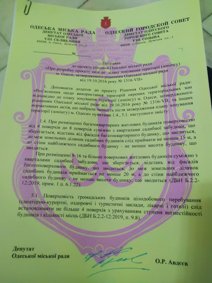 На сессии горсовета 3 февраля рассмотрят изменения в текстовую часть Зонинга или Плана зонирования территории Одессы, куда должны включить мои правки, которые я подал как депутат горсовета.