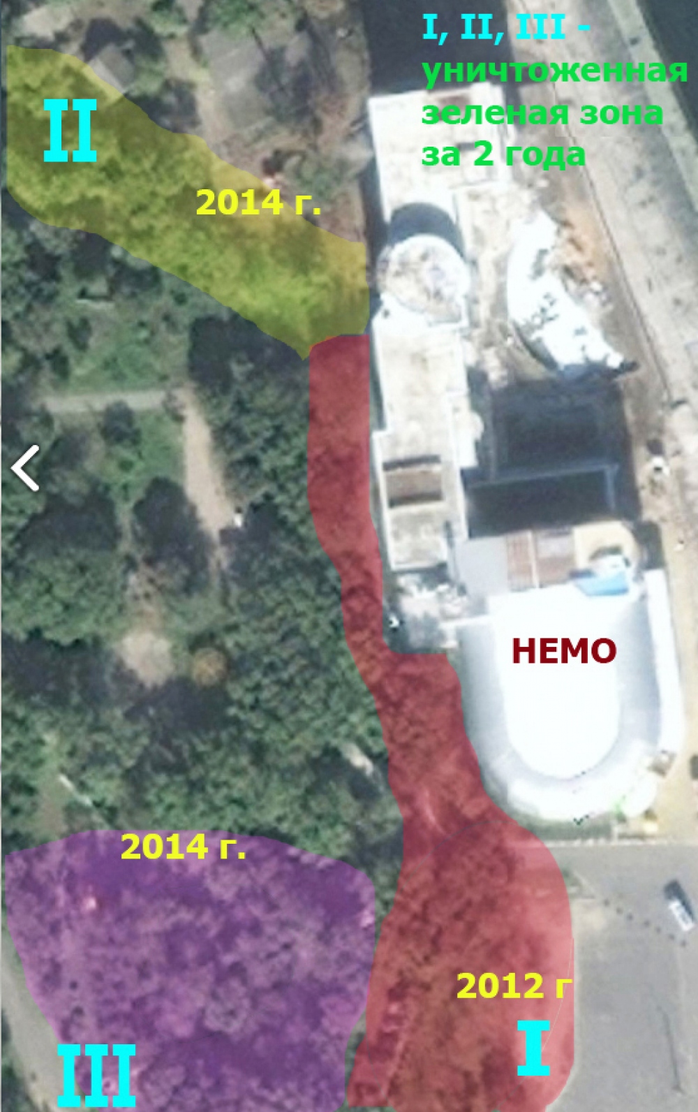 На этих картах наглядно видно, что всего лишь за 2 года фирма «Нерум» уничтожила   около 50% всех насаждений этого зеленого массива Ланжерона (это еще без учета многих деревьев, которые были уничтожены под фундаментом самой гостиницы и дельфинария, а также тех, которые еще вероятно будут уничтожены под тротуарную плитку, фонтанную инфраструктуру, аттракционы и т.д. на оставшейся, пока, зеленой площадке) и вскоре вся эта территория станет частной собственностью, часть из которой уже действительно обходными   путями ушла от горожан. Пару лет назад, они   заключили договор о сотрудничестве с управлением инженерной защиты города, согласно которому профинансировали реконструкцию берегозащитных сооружений. Без этого дельфинарий, непонятным образом, появившийся на самом берегу моря, могло попросту размыть. Один из пунктов договора прямо предусматривал, что реконструированные берегозащитные сооружения будут собственностью города. Однако в результате владельцы дельфинария решением суда неожиданно стали владельцами подвалов, клумб, баров и даже мощения на набережной, и получили правоустанавливающие документы. Теперь, как владельцы недвижимости, они могут в обход закона стать и владельцами земли. Это явно попахивает обманом и мошенничеством.
