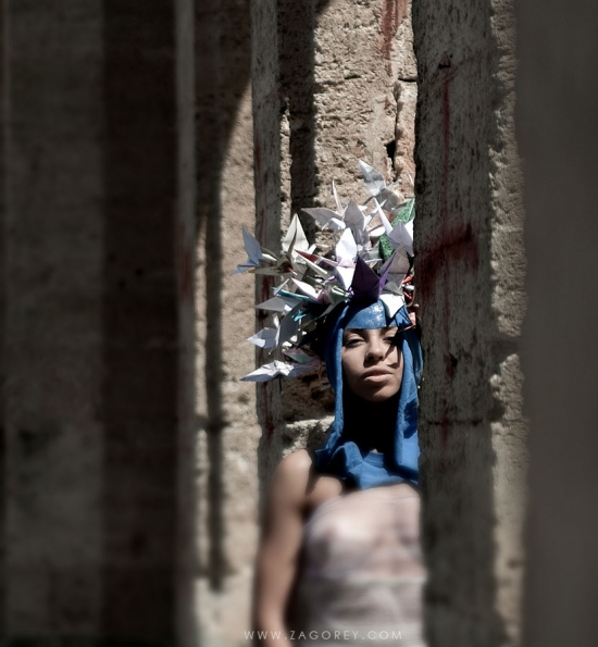 Неплохим дополнением модного гардероба станет шапочка из фактурных кусочков бумажек, газет, флаеров и подставок под тарелки, симпатичных журнальных страниц, специальной рисовой бумаги, из специально окрашенной бумаги в технике суминагаши. [Усадьба Курисов. Александр Загорей photo; Ирина Сапожникова model; Анири Кинтевс style]