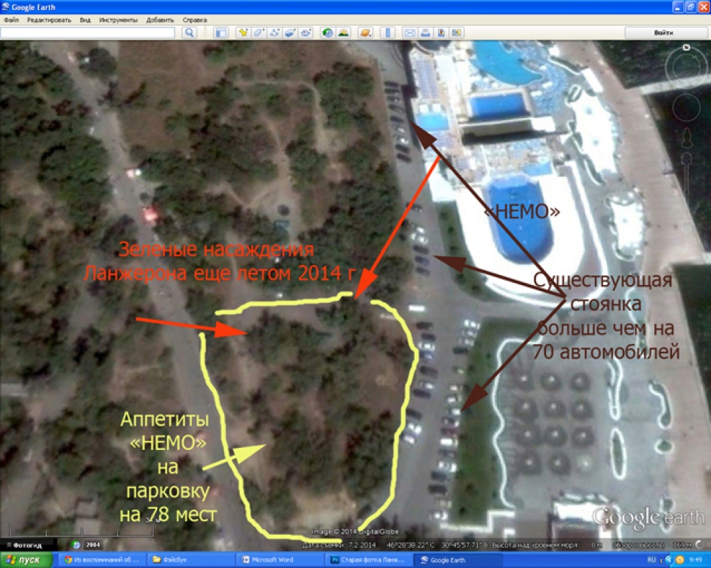 Когда первый раз огромная милицейская армия, согнанная Трухановым в дождливую погоду для защиты бандитской и незаконной стройки-парковки на пляже Ланжерон и издевательства над трассой здоровья, на помощь одесситом пришел МОРСКОЙ АВАТАР. Суровые волны Черного моря забросали булыжниками дельфинарий «НЕМО», заточенные дельфины испытывали сильнейшее волнение, а озерные чайки совершали невероятные виражи над прибрежной зоной. Природная стихия демонстрировала единый и взаимосвязанный принцип всего живого — принцип АВАТАРА и была солидарна с одесситами, защищающими свои конституционные права. И вот, в субботу – 22 ноября 2014 г., в день памяти жертв голодоморов, когда одесситы снова вышли защищать приморские склоны, уничтожаемые преступными деяниями власти и бизнесменов из дельфинария «НЕМО» под чутким руководством Труханова, Одессу сильно ТРУХАНуло. Магнитуда землетрясения в эпицентре зоны Вранча была 5, 5 балла по шкале Рихтера. Такой мощности одесситы давно не ощущали. Это было второе предупреждение АВАТАРА. На подмогу морскому, поддержать борьбу одесситов, пришел АВАТАР из недр земли. Что же будет в следующую субботу в 12-00? Именно на это время одесские активисты собирают массовую акцию в защиту приморских склонов. Внимание. Специально для тех, кто верит хозяину дельфинария — коммунисту Кисловскому и его служащим по дельфинарию НЕМО, что там не было деревьев и была мусорная свалка выставляю 2 фото и карту с Гугла, фиксирующей ситуацию до уничтожения зеленых насаждений. На фото вы можете ознакомиться с тем, какой был зеленый склон в том месте, где сегодня противоправно и преступно строится парковка. |