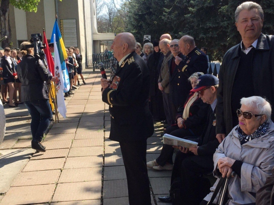 На мероприятии выступили ветераны ВОВ и участники освобождения г. Одессы — П.З. Паньков, В.П. Кржеминский, В.И. Баев, представитель оперативного командования «Южный» подполковник С.А. Масленко, представитель командования ВМСУ подполковник О.С. Найда, представитель 3-го отряда космонавтов А.А. Скворцов. Все выступающие поделились воспоминаниями военных лет, а в зале царила невероятно теплая, проникновенная атмосфера.