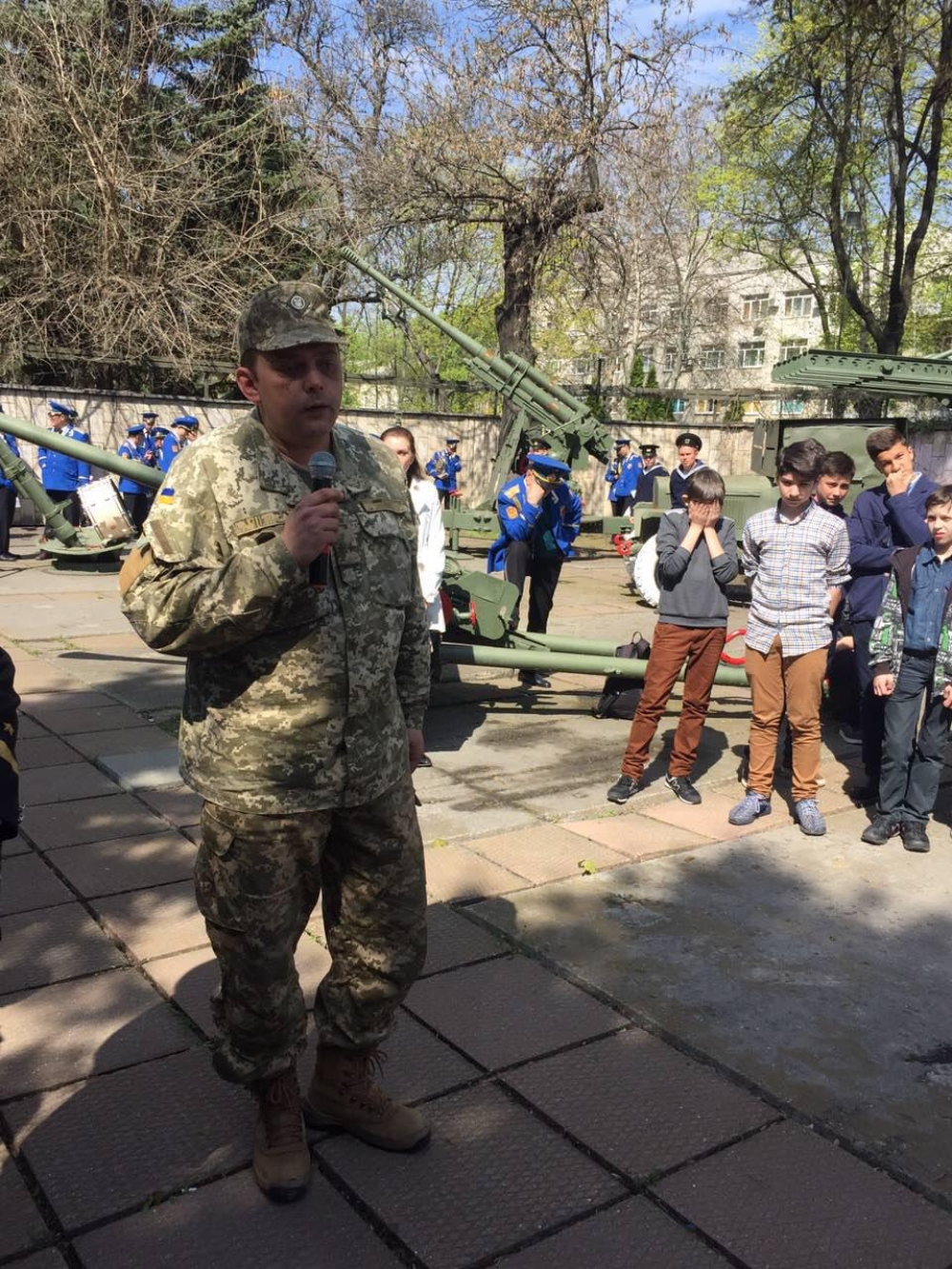 Открыл митинг председатель Всеукраинского Союза Общественных организаций ветеранов и инвалидов войны, военной службы, ВМФ и моряков-подводников Украины, капитан I ранга, кавалер ордена Красной Звезды Евгений Семенович Лившиц. После выступления участников ветераном войны в Афганистане В. Сергачевым для ребят была проведена экскурсия по выставочной площадке музея, где им детально рассказали о каждом экспонате боевой техники. От имени всех благодарных потомков курсанты и школьники возложили к застывшим экспонатам красные тюльпаны.
