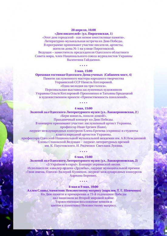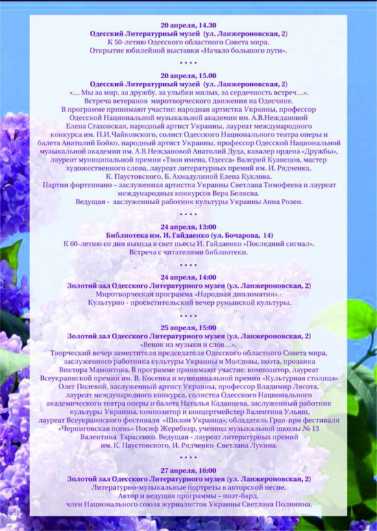 Одесский областной Совет Мира предлагает Вашему вниманию