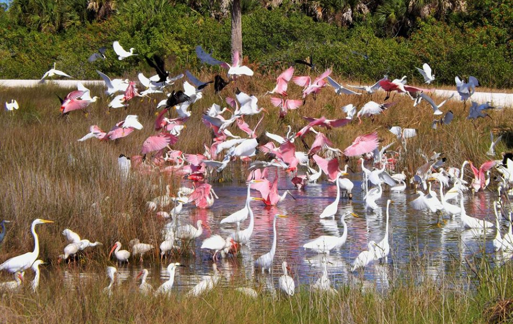 На фотках: райские водно-болотные угодья «загнивающей» Америки- колпицы, каравайки, цапли, пеликаны во Флориде США и райские водно-болотные угодья в дельте Днестра, до уничтожения олигархами заповедных пойменных лугов.