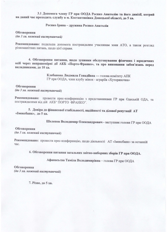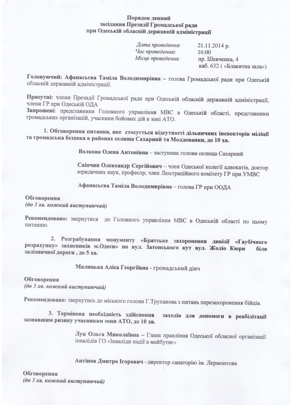 Повестка дня заседания Президиума Общественного совета при Одесской ОГА 21.11.2014.