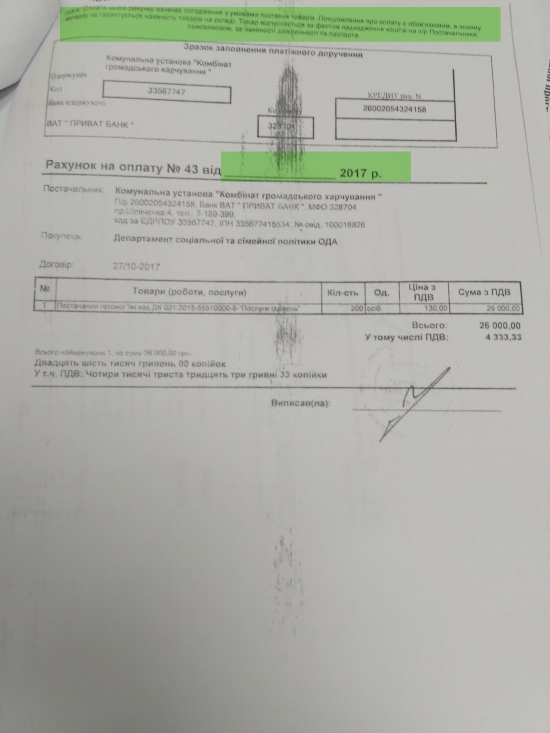 А в Рахунке на оплату готовой еды от КУ «Комбинат громадського харчування» в самом верху с пометкой «Увага! » вообще значится «Товар відпускається за фактом надходження коштів на п/р Постачальника»!!!