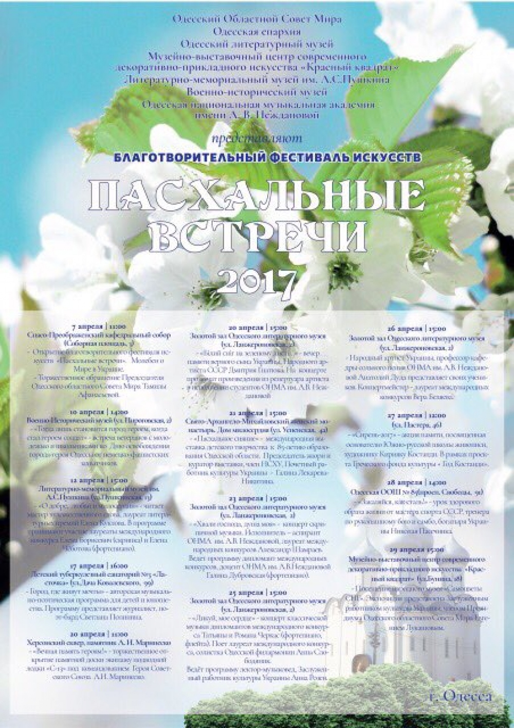 - Открытие благотворительного фестиваля искусств «Пасхальные встречи». Молебен о Мире в Украине.