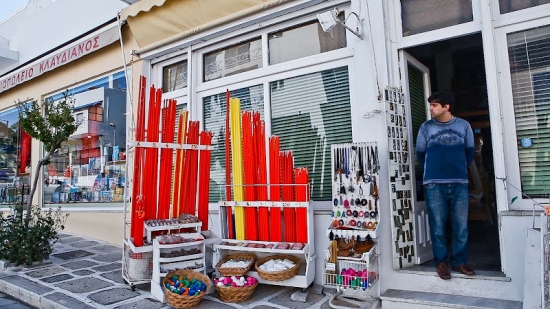 Утром мы идем сюда всей регатой. Лавки уже открыты. Почти в каждой продают свечи. Нас предупреждают: в храме икон не купить — только здесь. Равно, как и нательные крестики, и прочую церковную утварь.