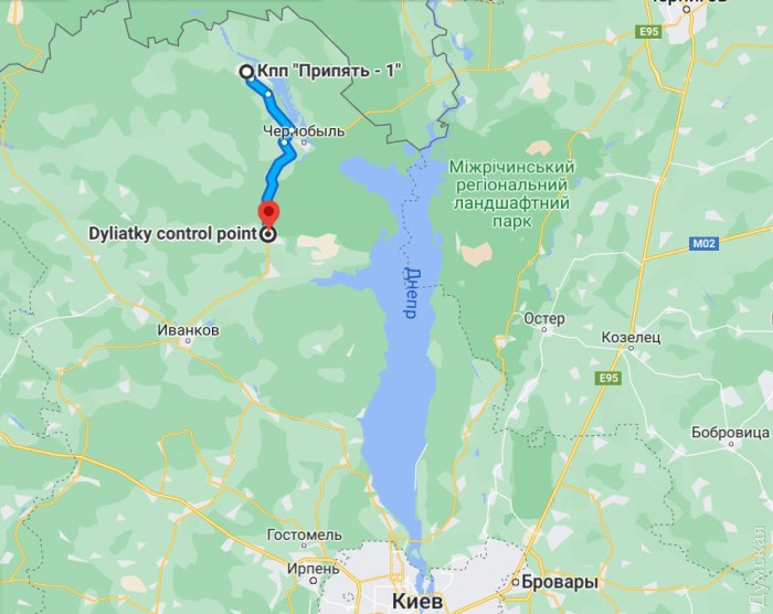 В Іванкові дорога з Чорнобиля перетинається з трасою Р-02, яка через Димер та Вишгород йде на Київ. Пам'ятаєте, на початку березня в бік Києва стояла довжелезна колона російської бронетехніки? Вгадайте, яким шляхом вона рухалася. Так, звісно — через Прибірськ та Іванків.