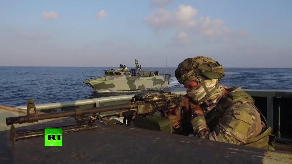 В ходе учений бойцы передовой группы спецназа совершили высадку с подводной лодки на незнакомый берег, произвели разведку и дали команду на прибытие основных сил. После этого, морские пехотинцы скрытно подошли к берегу на военных катерах, высадились и взяли под свой контроль часть побережья.