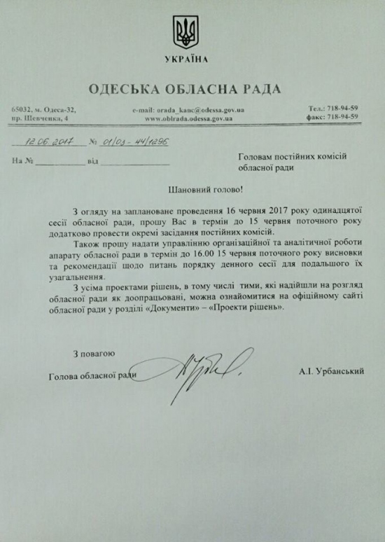 Соответствующее распоряжение 12 июня подписал глава облсовета Анатолий Урбанский.