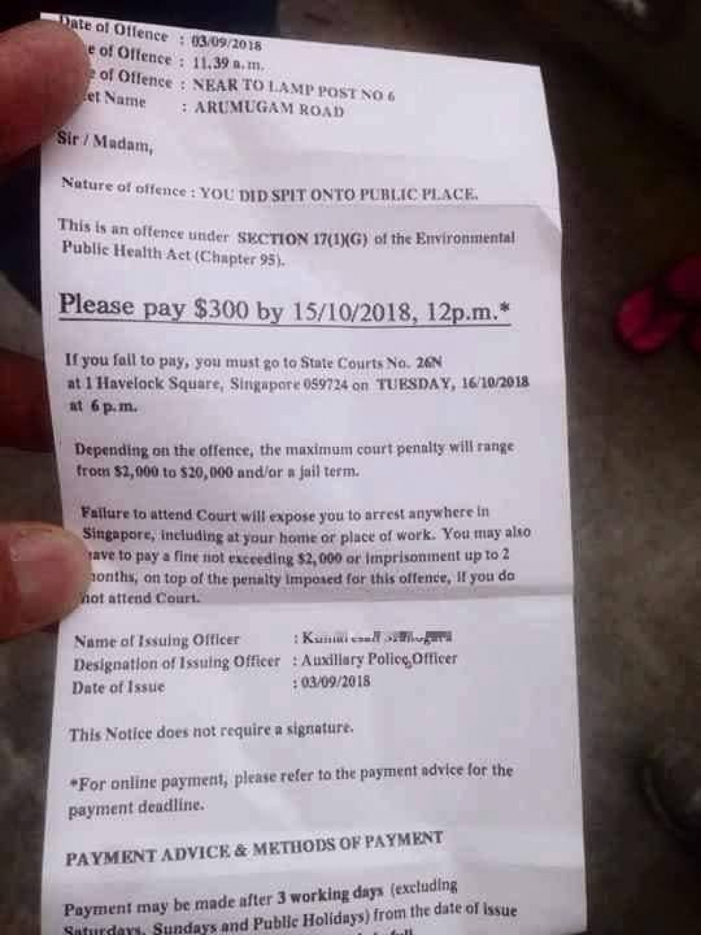 На першому фото штраф в 300$ іноземцю від Сінгапурської поліції, за те, що він плюнув (!! ) на тротуар. Чоловіка зупинив офіцер поліції, продемонстрував відео зі смартфону та виписав штраф. Саме через такі штрафи та те, що поліція реагує на такі речі в Сінгапурі ідеально чисто на вулицях.