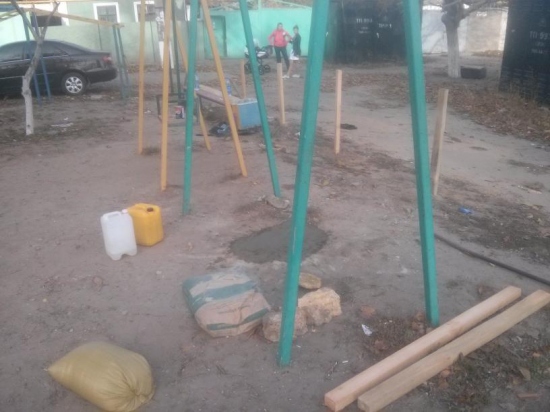 Поступила просьба от жителей поселка Сахарный привести в порядок детскую площадку на ул. Химической и по — возможности установить ограждение, т.к. игровой комплекс стоит практически рядом с дорогой, а дети постоянно норовят выбежать на проезжую часть. Не долго думая, члены и друзья Общественного совета при Одесской ОГА принесли инструменты, закупили материалы и собственными силами навели на территории детской площадки чистоту и порядок, а самое главное поставили ограждение.