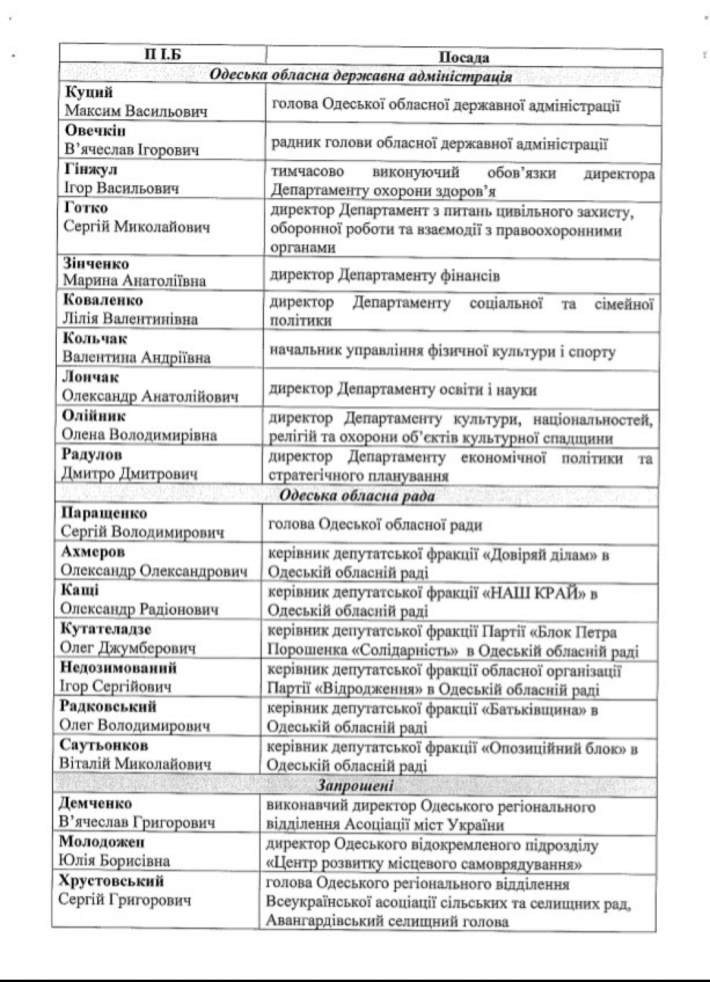 ОГА предлагает сформировать на территории области 69 спроможных ОГТ. Ловите список. В 15.00 этот перечень руководство области обсуждало с нардепами (итог пока не ясен). Депутатов Одесского областного совета (за исключением руководителей фракций) не пригласили. Представителей громад — тем более. На совещание и прессу не пустили. «Территориальное» видение ОГА я разместила на странице в ФБ. Рядом — список тех, кто приглашен ОГА на встречу.