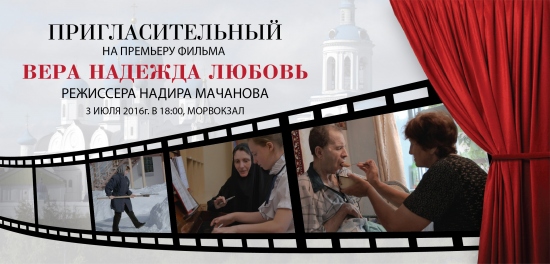 03 июля 2016 года в 18:00 состоится торжественная Премьера документального фильма известного азербайджанского кинорежиссера Надира Мачанова – «ВЕРА НАДЕЖДА ЛЮБОВЬ», показ которого впервые произойдет именно в г. Одессе.