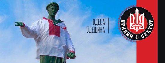 Если восставшие в 1905 году против Российской империи украинские матросы с броненосца «Потемкин», повыкидывавшие за борт царских морских офицеров у одесских правосеков являются «червоними катами», то новороссийский царский реакционный деятель Дюк Де Ришелье, сбежавший от Великой Французской революции к русскому царизму на службу, изображен на обложке странички «Правий сектор — Одеса» в фейсбуке в вышиванке и так понимаю он для них — «герой нації» :)