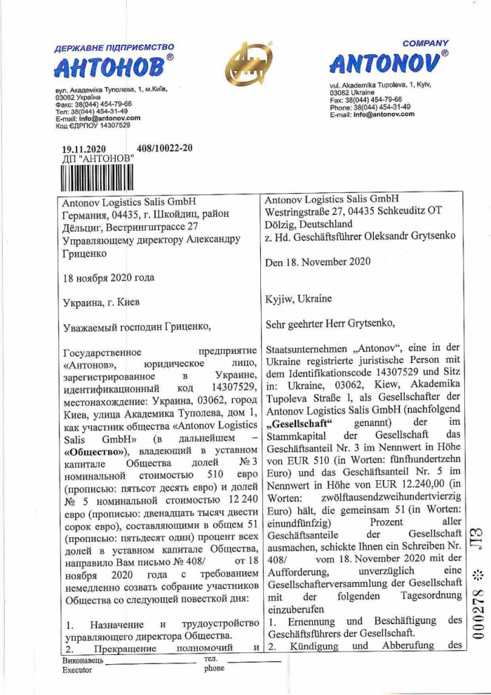 Напомним, что в ноябре 2020 года уголовной полицией Германии в аэропорту Лейпцига были задержаны с поддельными удостоверениями члены экипажа воздушного судна должностные лица ГП «Антонов» Коцюба, Дехтяренко, Шевченко, Харченко и адвокат юридической фирмы «Ильяшев и партнеры» Марченко, в отношении которых в Германии возбуждено уголовное дело № KIW098/20 согласно параграфа 271 Уголовного кодекса ФРГ в связи с неправдивым документальным подтверждением.