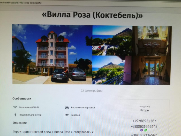 Объявления продолжают висеть в интернете, зазывая незадачливых туристов на южный берег Крыма, в Коктебель, на «Виллу Роза». Ведь туристический сезон в Крыму через 3 месяца.