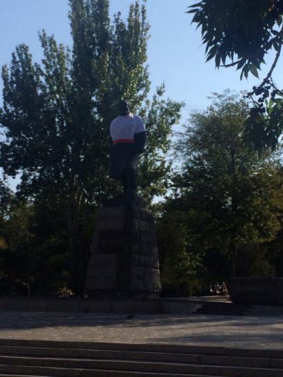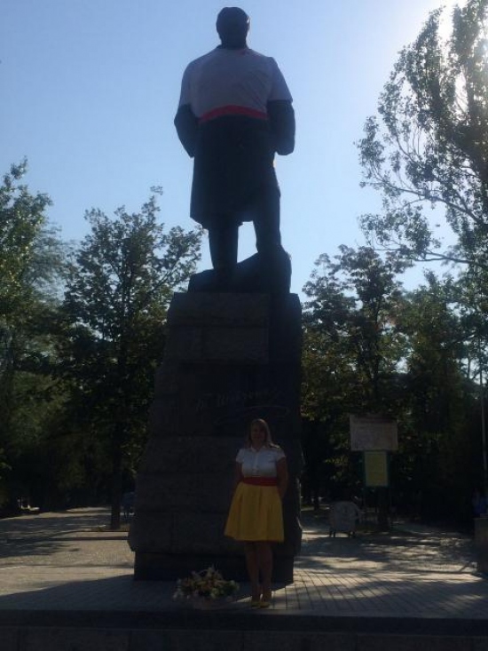 На монумент Кобзаря, который находится у центрального входа в парк, одели праздничную белую рубашку с морским воротником и красным поясом. Таким поступком мы хотим выразить, что Одесса за мир и за единую Украину, ведь Одесса и Одесситы известны всему миру!!!