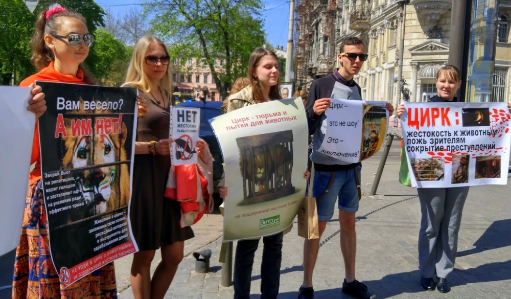 17 апреля около пятидесяти активистов независимого зоозащитного, зеленого и профсоюзного движений Одессы организовали традиционный весенний марш в защиту диких животных и против их использования в цирковых программах. Акция началась в самом центре Одессы – на Дерибасовской и завершилась у памятника Дюку. «Мы хотим донести до людей, что дикое животное, даже рожденное в неволе, остается диким. В цирке все живые существа лишены самого главного – возможности реализовать свою биологическую программу. Дело в том, что во многих странах мира запретили использовать животных в цирке. Признали, что они не клоуны и не артисты», — рассказала лидер инициативной группы по защите прав животных и природных ресурсов Елена Марченко. Председатель авторитетной волонтерской группы «Время перемен» Инна Валешковская заявила, что животные — не инструмент для развлекательной индустрии. По ее словам, цирки, дельфинарии, шапито и им подобные заведения, где эксплуатируются животные, необходимо запретить, так как это аморально и недопустимо лишать животное воли и принуждать, часто побоями и голодом, выполнять неприродные для него действия для развлечения людей и извлечения прибыли. Животное должно жить в природной среде, а не в клетке 2 на 2, а люди с детства должны понимать это и учиться уважать других живых существ, чтобы добиться уважения своих интересов. Координатор Всеукраинского независимого профсоюза «Захист праці» Андрей Ищенко обратил внимание на то, что цирк с использованием животных – исторический анахронизм и пережиток наподобие гладиаторских боев, отмененных в 404 году нашей эры и корриды, запрещенной в 2012 году. Он также отметил, что зоозащитный, экологический и профсоюзный активизм являются тремя важными составляющими общего демократического движения против превращения всего живого в средство для извлечения прибыли и приумножения капитала, за сохранение жизни на планете Земля и призвал активистов к солидарной взаимопомощи в совместной справедливой борьбе на всех трех направлениях. Участники марша раздавали листовки зоозащитной тематики, общались с жителями города и призывали их присоединяться к кампании протеста. Успешная акция в Одессе показала, что такие акции протеста могут и должны быть самоорганизованными на энтузиазме живого солидарного движения. Пресс-служба Всеукраинского независимого профсоюза «Захист праці» |