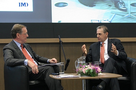 Дональд Маршанд (слева) дискутирует с президентом Международного олимпийского