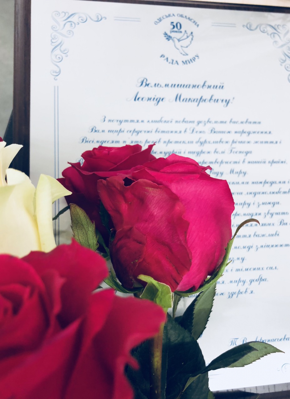 Вісімдесят п’ять років протекли бурхливою річкою життя і за благої, премудроі та щедрої волі Господа Ви стали справжнім втіленням миротворчості в нашій країні, очоливши Всеукраїнську Раду Миру. Не злічити Ваших заслуг, які відзначені високими нагородами і тих благодіянь, які Ви щодня робите, проявляючи людинолюбство і милість, стверджуючи принципи добра, миру і злагоди.