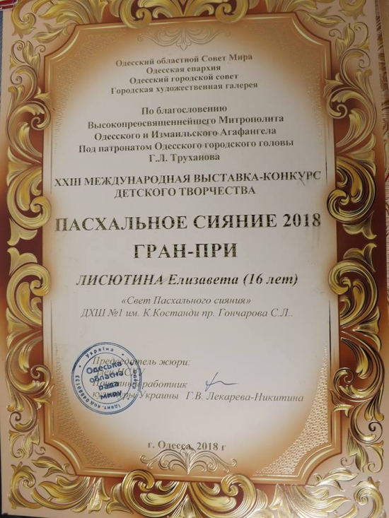 Жюри определило лучшие произведения в трех номинациях — живопись, графика, прикладное искусство. Гран-при завоевала одесситка Елизавета Лисютина