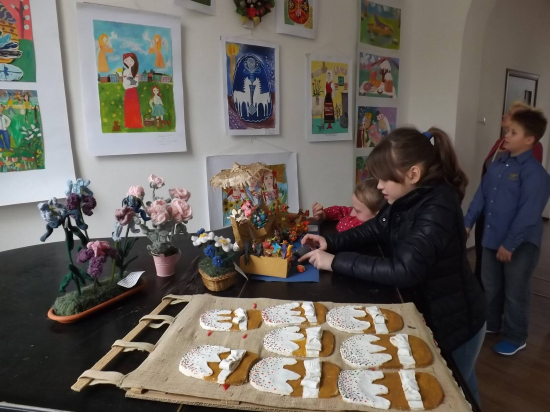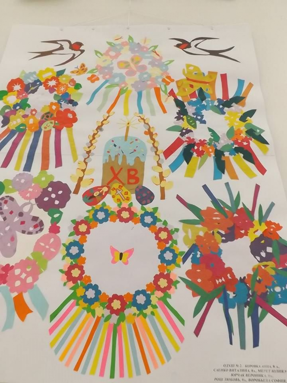 На выставке представлено более 300 работ юных художников из Украины, Франции, Италии и Польши. В экспозиции можно увидеть рисунки, фигурки ангелов, искусно расписанные пасхальные яйца, квиллинг, оригами, обрядовые весенние и пасхальные куклы; вышивки, композиции из различных материалов, расписанные ткани, гобелены, иконы и витражи.