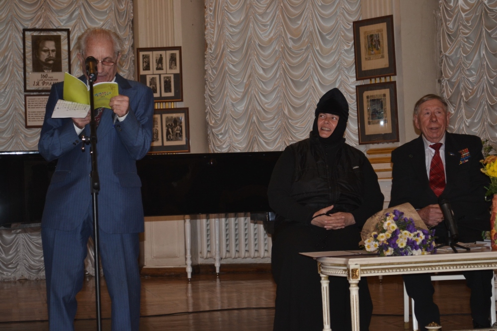 Одесский областной Совет Мира в рамках межобластной миротворческой благотворительной программы«Золотая осень Мира – 2016»20 октября провел два заключительных мероприятия: творческий вечер поэтаВиктора Мамонтова «Все мы ходим под Богом» и художественную выставку Алены Алексеенко«Оксимороны судьбы», которые состоялись в Одесском литературном музее.Вечер Виктора Мамонтова открыла первый заместитель председателя Одесского областного Совета Мира, писатель, журналист Валентина Гайдаенко.В приветственной речи она подчеркнула важность проведения таких творческих проектов для укрепления мира, возрождения и развития культуры и духовности, осветив вкратце деятельность Совета Мира в этом направлении. Творческий вечер вела игумения Серафима, настоятельница Одесского Свято-Архангело-Михайловского женского монастыря.Стихи поэта читала Лукина Светлана– мастер художественного слова, лауреат литературных премий им. К. Паустовского и И. Рядченко. Выступил хор храма Святой Марии Магдалины, который исполнил музыкально-хоровые произведения на слова В. Мамонтова. Прозвучали стихи поэта П. Запорожца, ветерана морского флота, и В. Снятовского, генерал-майора в отставке. С благодарственными словами выступил и подарил В. Мамонтову икону Ю.Петрусенко, главный инженер ЧП «Таировтранссервис». Творческие вечера поэтов неизменно пользуются огромным интересом со стороны зрительской аудитории. На творческом вечере присутствовали представители властных структур, военнослужащие, курсанты Одесской военной академии, почитатели таланта Виктора Мамонтова из Овидиопольского, Ивановского и Беляевского районов Одесской области, делегации учащихся во главе с директорами школ. Также в мероприятии принял участие Герой Украины, Почетный гражданин г. Одессы и Одесской областиВладимир Филипчук.Выставка Алены Алексеенко «Оксимороны судьбы»» представлена из 15 картин. Это уже шестнадцатая выставка молодого художника. Алена Алексеенко – незаурядная личность: пишет картины, сочиняет стихи, увлекается художественной фотографией, играет сценические миниатюры в театре Перуцкого.С малых лет её манил к себе мир искусства – с восьми лет она начала писать стихи и прозу. Семья была против этих увлечений, считая, что материальные блага выше духовных. По настоянию родителей девушка в2003 г. поступила в Строительную академию. Параллельно с учёбой в академии Алена занималась творческой деятельностью, выступала в различных студенческих КВНах и капустниках, пробовала свои силы на телевидении. Судьбоносной встречей для неё явилось знакомство с писателем, автором десятитомника «Бандитская Одесса» академиком В.Р. Файтельберг-Бланком, состоявшаяся в 2005 году. Этот человек показал ей путь в настоящую журналистику. Вскоре она становится его ученицей, начинает помогать в подборе материалов для будущих книг, работая в архивах Приморского и Малиновского судов. Результатом совместной плодотворной работы явился выход различных публикаций в одесских газетах и журналах. Часто Алена работала с близким другом, журналистом, философом, поэтом Вячеславом Слисарчуком.В 2011 году Алена Алексеенко была принята в Одесское отделение НСЖУ. Она неоднократно была отмечена многими почётными грамотами и дипломами. Первая её дебютная выставка живописи прошла в Доме ученых в 2015 го