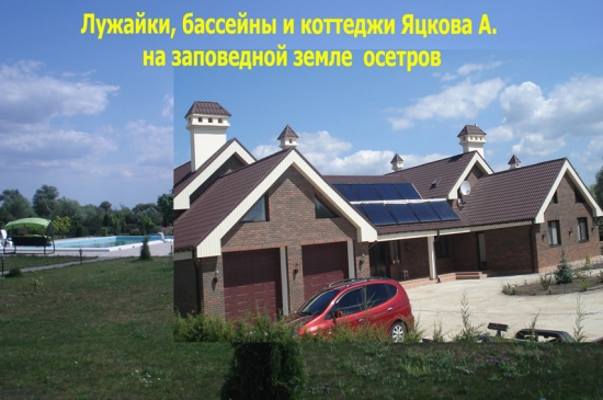 В настоящее время, на заповедных землях в 100 метровой береговой зоне (Белгород-Днестровский район Одесской области) — землях бывшего осетрового хозяйства строятся десятки коттеджей, один из которых принадлежит бывшему экочиновнику Яцкову А.В. В соответствии с проектной документацией на этой природоохранной территории предполагается строительство гостиниц, ресторанов, коттеджей со значительным объемом хозяйственно-бытовых стоков – 60 м.куб. в сутки, что противоречит природоохранному законодательству Украины. Указанный объект в соответствии с    Постановлением Кабинета Министров Украины от  27 июля 1995 р. N 554 (Перелік видів діяльності та об'єктів, що становлять підвищену екологічну небезпеку, 20. Будівництво каналізаційних систем і очисних споруд) представляет собой повышенную экологическую опасность. Однако, несмотря на это, начальник отдела государственной экологической экспертизы Одесского обласного госуправления экологии Савченко М.Ю., начальник Одесского обласного госуправления экологии Кисиль О.М., а также главный государственный санитарный врач на водном транспорте Украины  Голубятников Н.И. (см. фотокопии) в нарушении Закона Украины «Про забезпечення санитарного та епідеміологічного благополуччя»,  п.7.2. Постановления Кабмина №2024 от 18 декабря 1998 года «Про правовий режим зон санітарної охорони водних об'єктів», Закона Украины о ПЗФ, Водного и Земельного Кодексов Украины, согласовывают этот опасный объект, расположенный выше Одесского питьевого водозабора – станции «Днестр», что создает угрозу национальной безопасности, поскольку касается качества единственного источника питьевой воды для миллиона жителей.